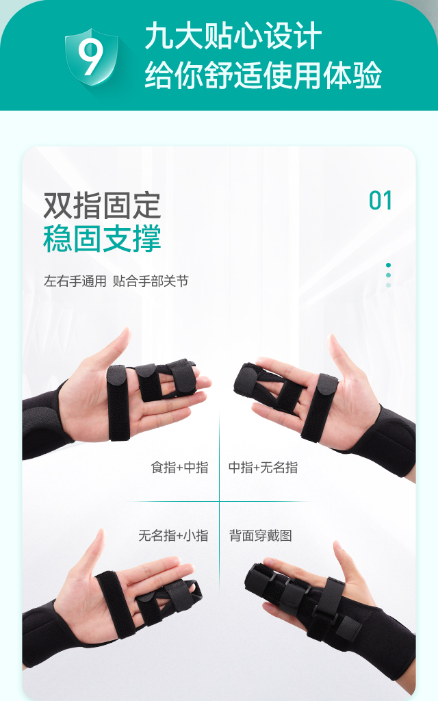 秝客手指固定器(兩指),鋁條加固,雙指固定支撐,面料透氣,固定綁帶輕松可調(diào)